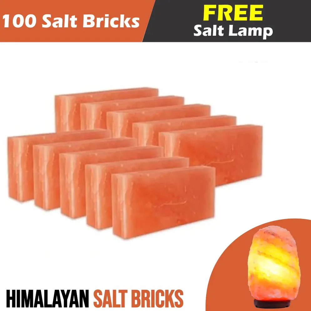 Himalayan Salt Bricks 8″ x 4″ x 2″ – Pack of 100 with Free Salt Lamp