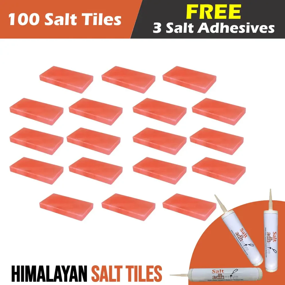 Himalayan Salt Tiles 8″ x 4″ x 1″ – Pack of 100 with Free Salt Adhesive